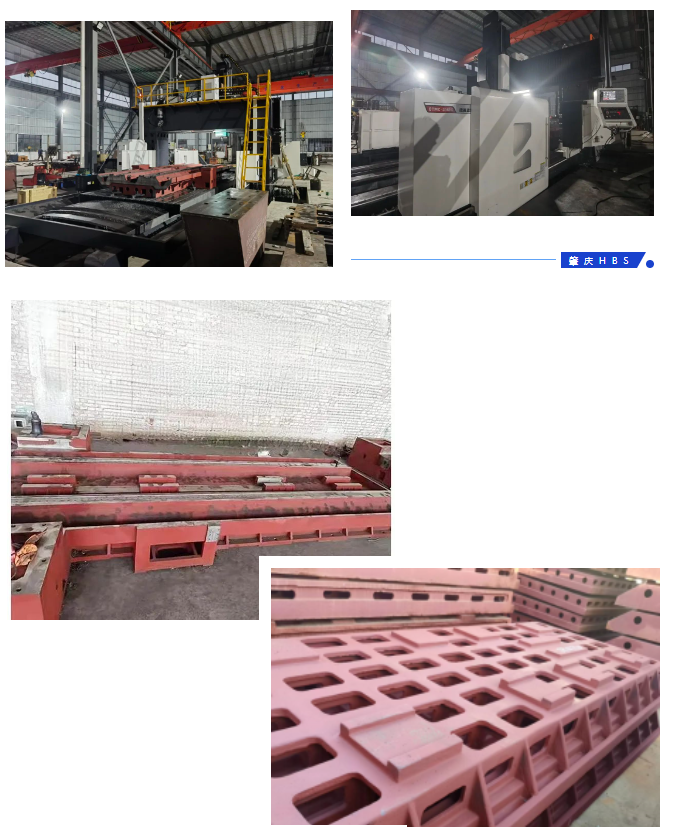 1、整體底座加強(qiáng)筋合理設(shè)計(jì),采用高強(qiáng)度的鑄件,以及精密鑄造工藝,實(shí)現(xiàn)了12米長(zhǎng)整體的機(jī)床底座,解決了鑄件結(jié)合面的精度誤差。