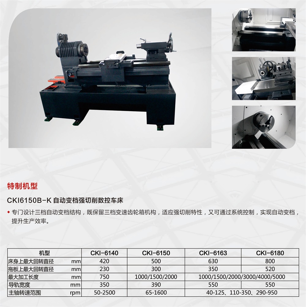 數(shù)控車床是市場(chǎng)上常見的普通車床的升級(jí)換代產(chǎn)品,對(duì)比普通數(shù)控車床,具有操作方便、加工質(zhì)量穩(wěn)定、加工工件光潔度高、全防護(hù)、切削液循環(huán)使用、環(huán)保性能好等特點(diǎn)。該類數(shù)控車床適用于加工軸類零件,螺紋、圓弧、圓錐及回轉(zhuǎn)體的內(nèi)、外曲面。6150及以上配置三檔變速箱,可以實(shí)現(xiàn)強(qiáng)力切削,滿足大切削量的加工要求。